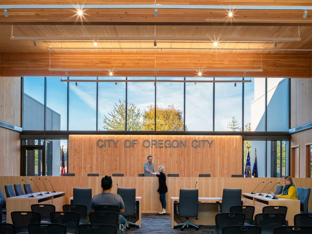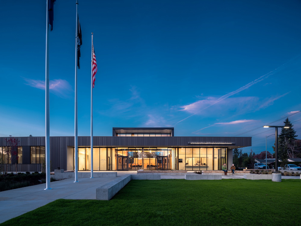 The 2019 SFI Sponsorship Award was given to Robert Libke Public Safety Building in Oregon City, OR. Home to Oregon City’s Police Department, City Commission Council Chambers, Municipal Court and Courts Administration the building was designed to be both welcoming and secure.