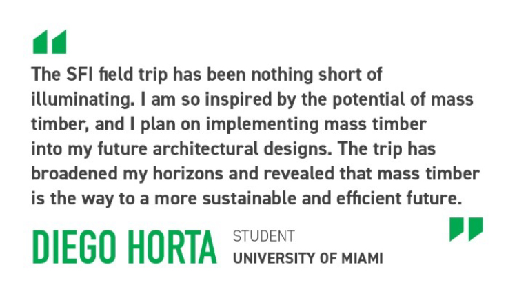 Projects like these promote sustainable practices, and drive positive change, underscoring the key role of education in shaping the future of architecture and building construction. These students will now carry the knowledge of mass timber and forest-building products into the workforce as future green building leaders.